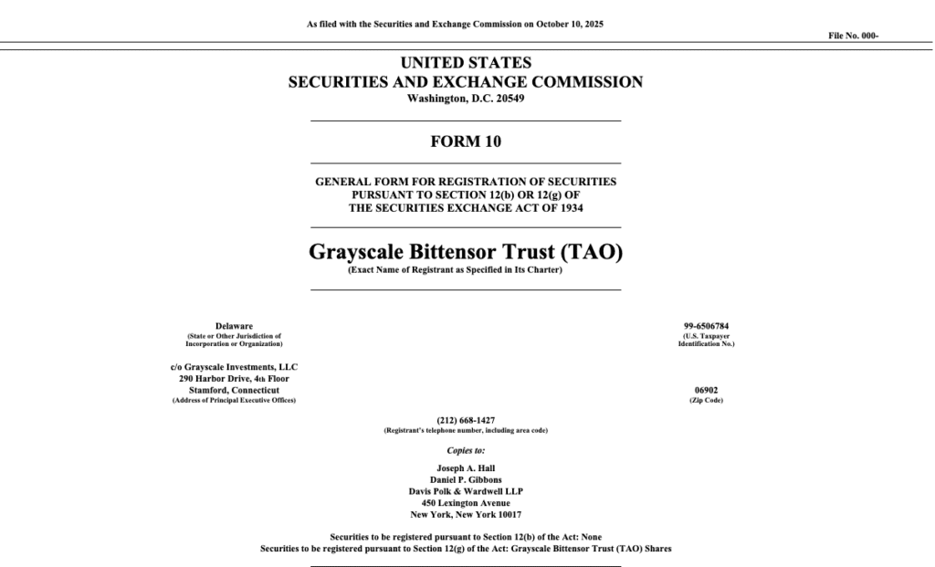 #Grayscale, Bittensor Trust ($TAO) için Form 10 başvurusunu SEC’e sundu.