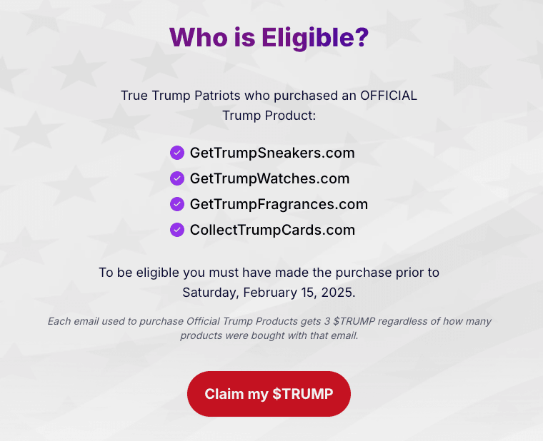 Trump’ın resmi ürünlerinden birini satın aldıysanız, 3 ücretsiz $TRUMP token almak için şu adımları izleyin: